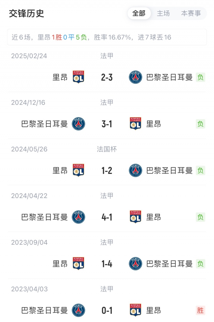 巴黎联赛7胜3平1负积24分,近5轮3平;里昂联赛6胜2平3负积20分,近5轮仅1胜。巴黎对阵里昂已获5连胜。